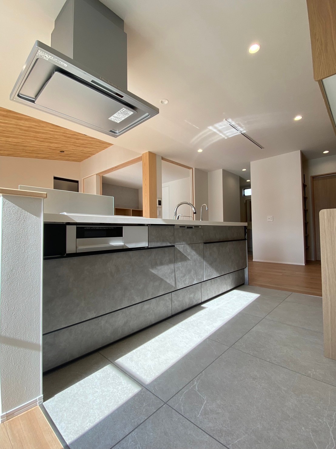 勾配天井と自然光が降り注ぐ明るいLDK