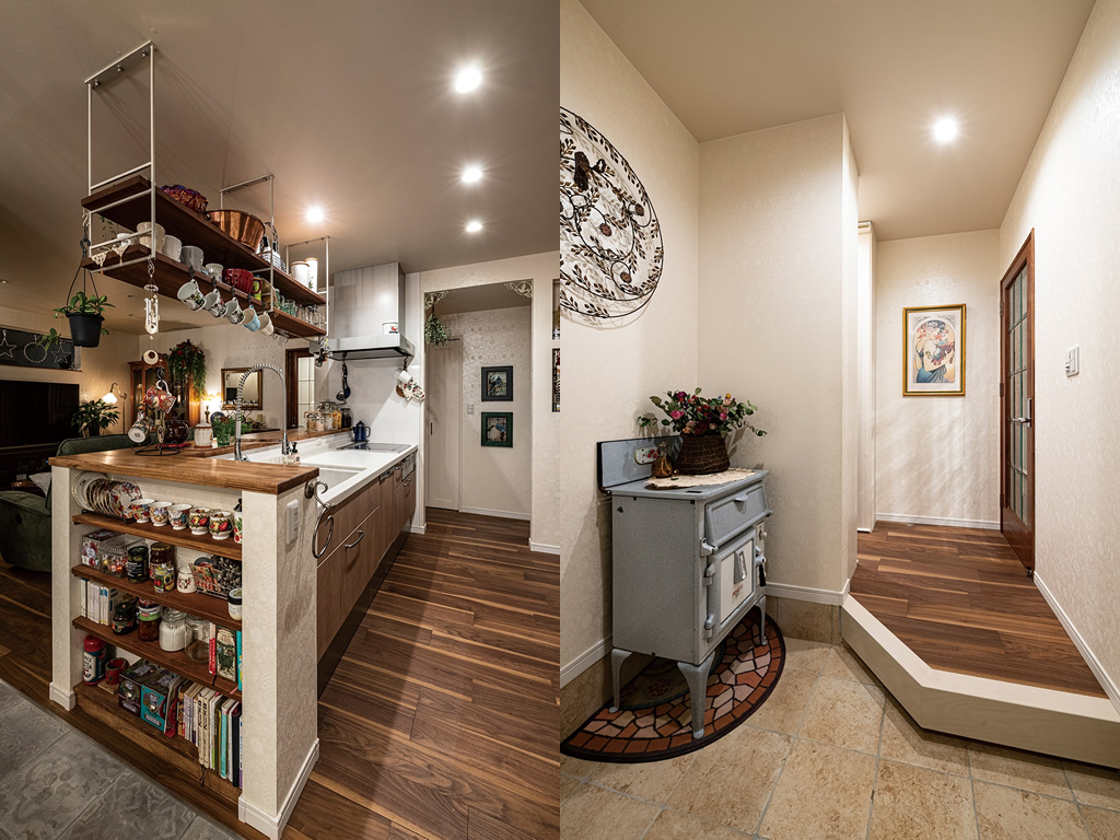 「自分達の好きなものをそばに置いて、お友達とキッチンダイニングを囲んで楽しく過ごせるようなホワイエが叶いました」。