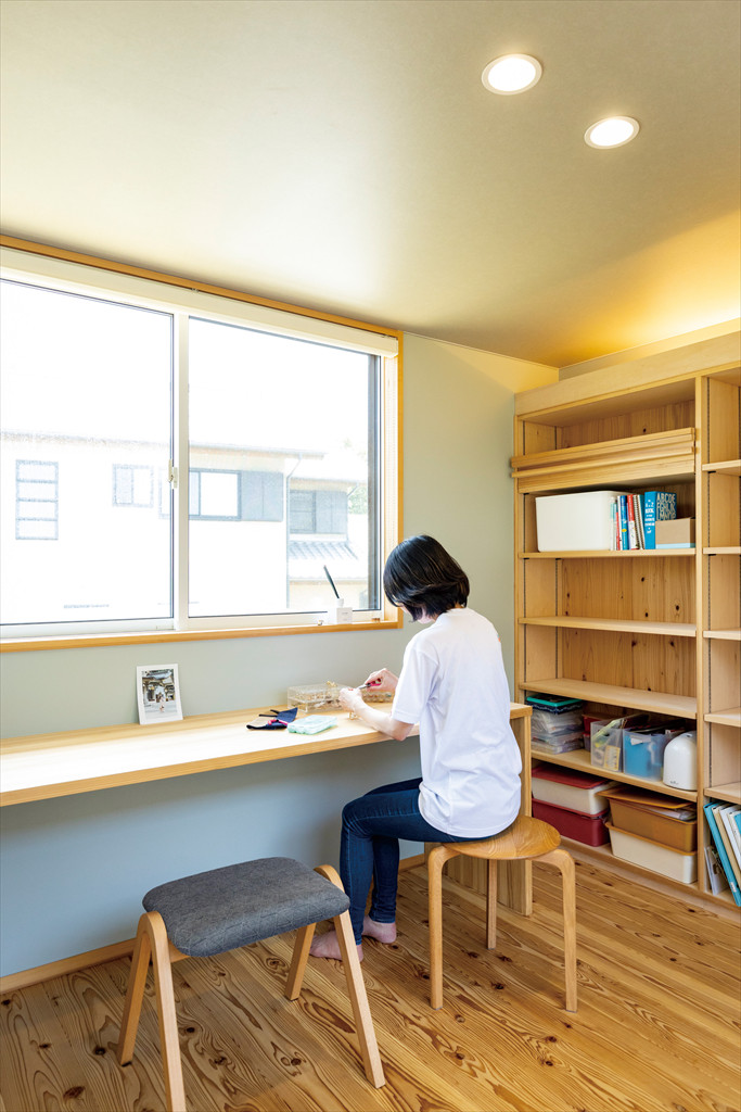 Hさんが家づくりのパートナーに選んだのは『イン&エムスクエア』の市﨑さん。山地から下流までをコンセプトに、小国杉などを使用した木の家づくりに長けた建築家だ。出会いは、ご主人の実家のお父様の、ガレージ兼アトリエを市﨑さんが設計したこと。そこで木の家に魅力を感じて「自分たちの家も市﨑さんにお願いしたい」と心に決めていたそう。土地が決まり、設計の最中にコロナ禍となり、より「家での時間を充実させたい」と考えたHさん。
